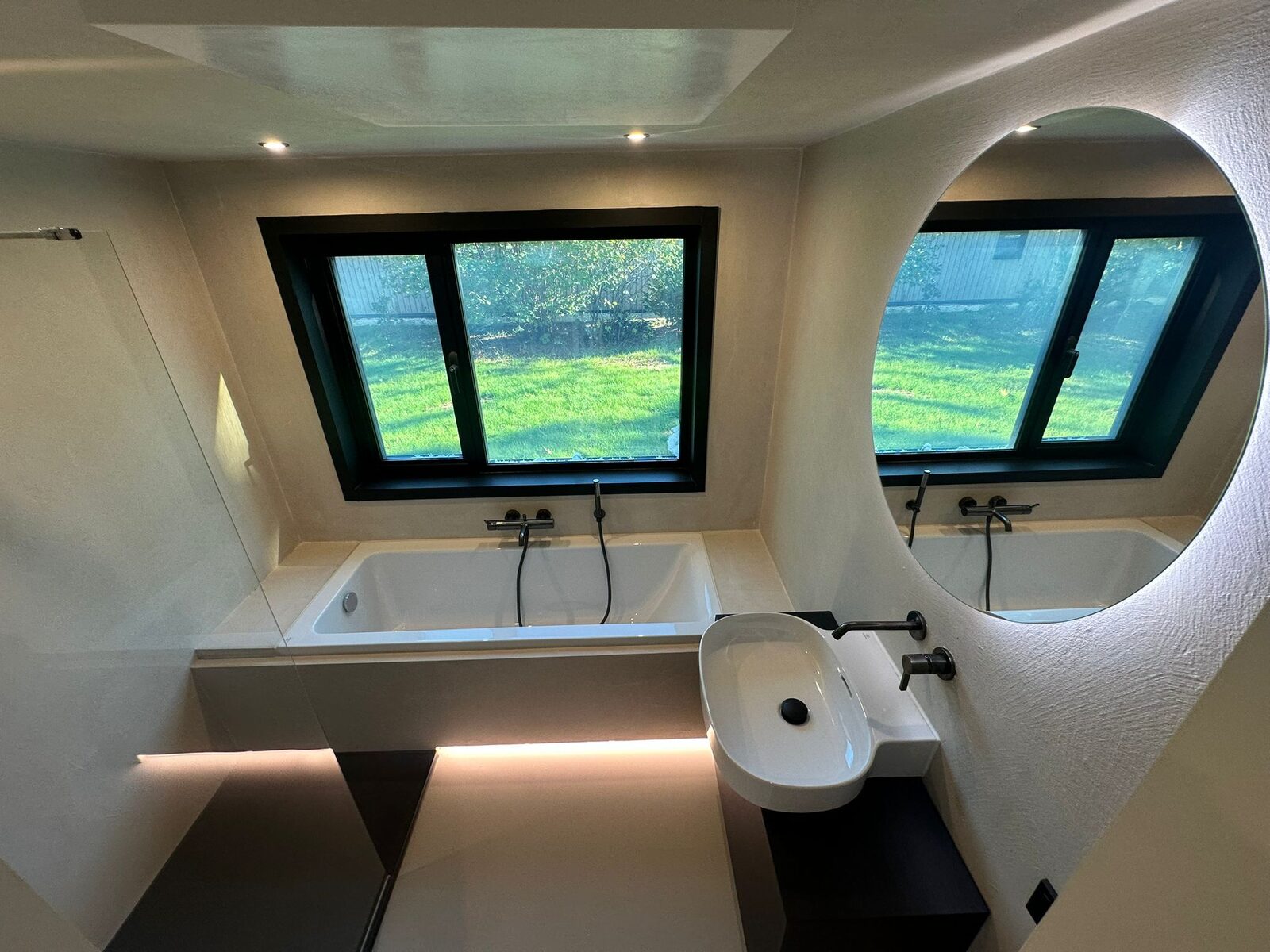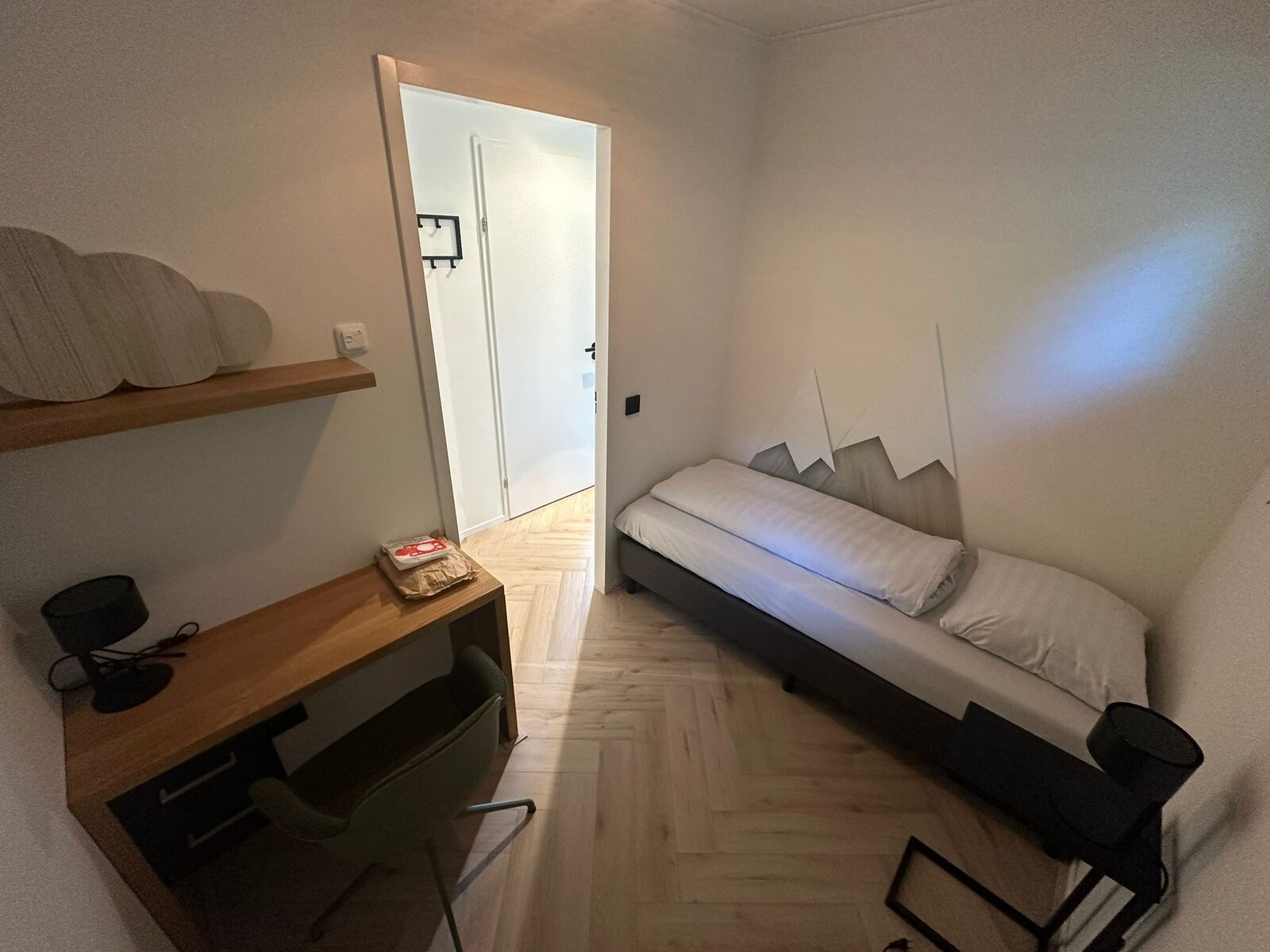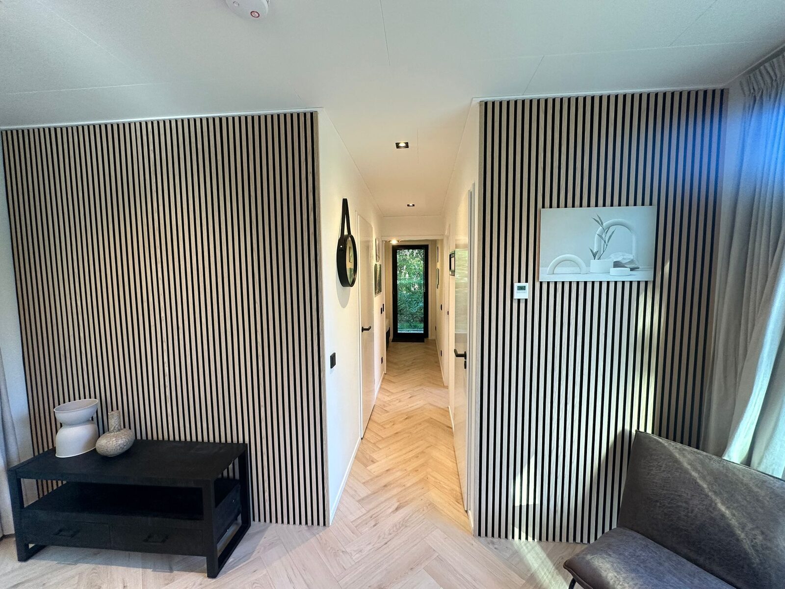 Vom Wohnzimmer aus gelangen Sie in den Flur, in dem sich zwei komfortable Schlafzimmer und ein stilvolles Badezimmer befinden. Wie das Wohnzimmer und die Küche wurden auch diese Bereiche sorgfältig mit hochwertigen Materialien eingerichtet und verleihen dem Ferienhaus eine warme und einladende Atmosphäre.